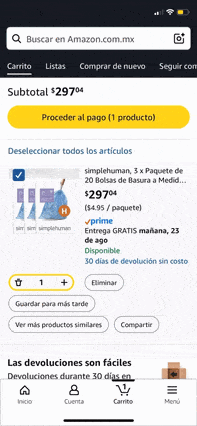 Al pagar con Kueski Pay en Amazon, recibes 1% de cashback en todas tus compras. Solo necesitas activar el cashback desde la app de Kueski antes de realizar tu compra. El beneficio se acumula en tu cuenta y puedes usarlo para ahorrar en futuras compras.